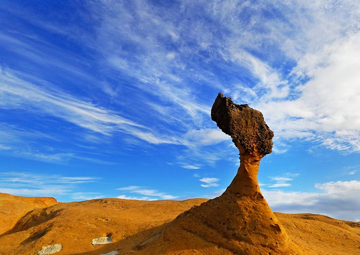 The main attractions in Yeliu Geopark are naturally formed mushroom rocks and ginger rocks. You may see the Queen’s Head, Dragon’s Head Rock, elephant rock, fairy’s shoe, earth rock and peanut rock. Queen’s Head, by appearance, looks like Queen Elizabeth I, which takes more than 4000 years to form. The length of its neck is 125 cm and has been weathered at a rate of 0.2 to 0.5 cm per year. It is expected to be broken in the next few years or the next earthquake. Here attracts more and more tourists from all over the world.